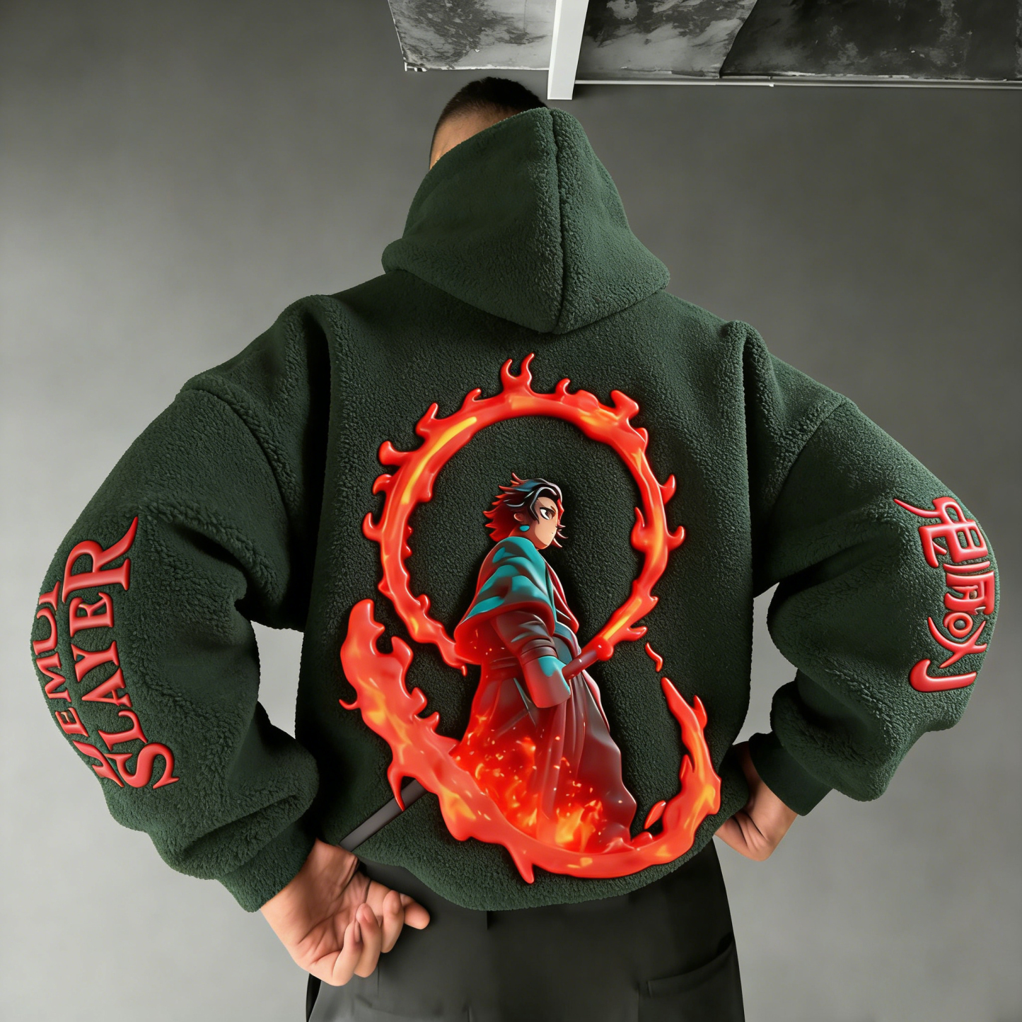 Men Demon Slayer Color-blocked Plush Hoodie