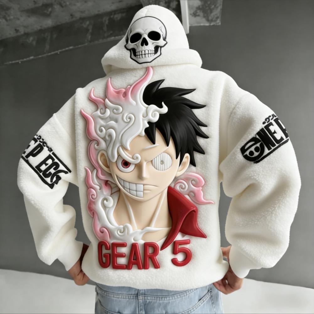One Piece Monkey D. Luffy Color-blocked Plush Hoodie